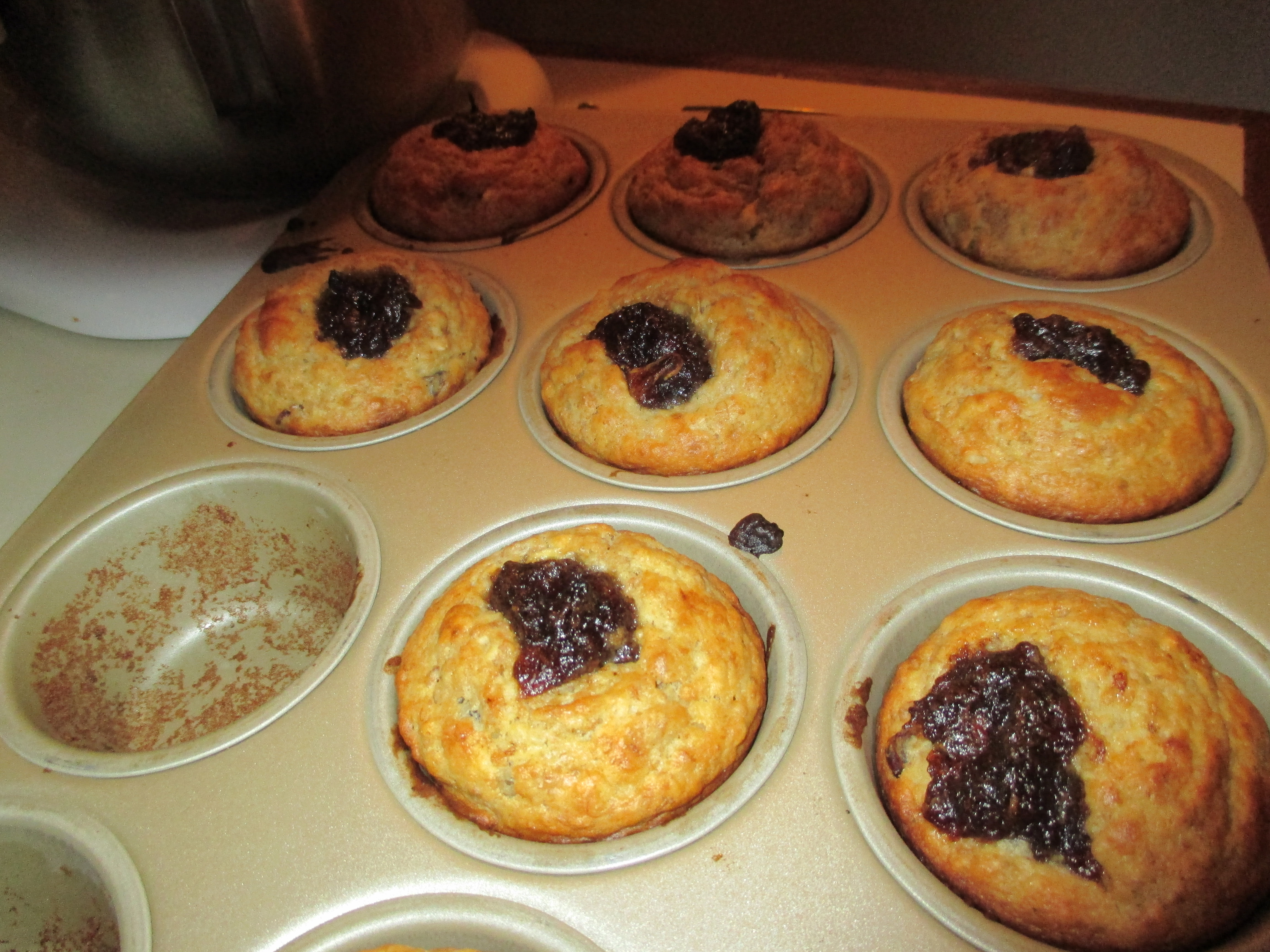 As soon as I found it, I knew that I wanted to use it in the middle of some bran muffins, but did not want to spend the extra time to partially fill each muffin cup with batter, spoon in the filling, then cover it with more batter and bake. My family loves the surprise in the middle of muffins, whether it be homemade apple filling or date filling, or most anything I dream up, actually.