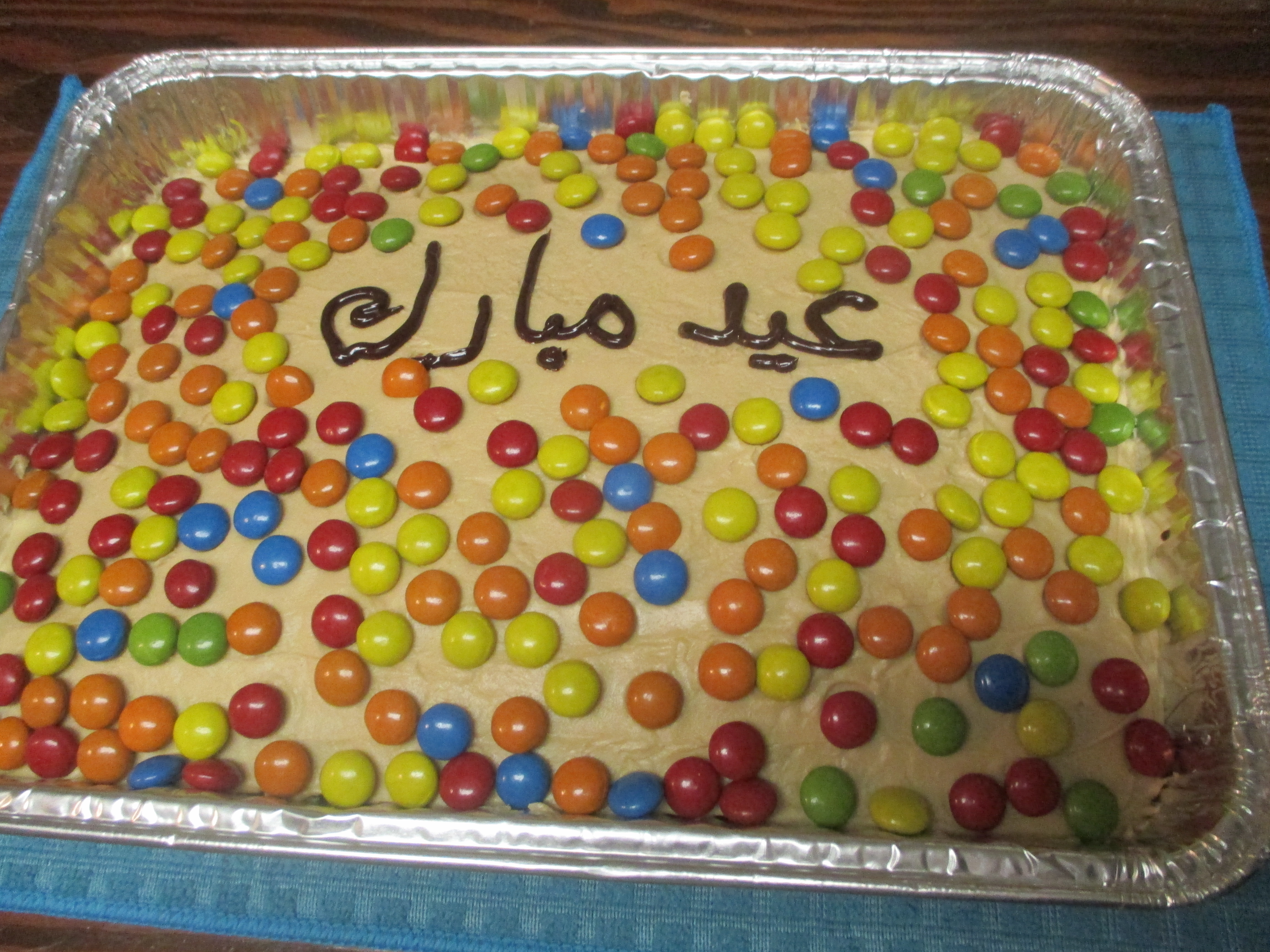 To my friends and those celebrating Eid Al-Fitr as Ramadan 2021 ends beginning at sunset tonight in Seattle, May 12th, I wish you all a Blessed Eid. Today I made this Crazy Cake with Penuche frosting, a sprinkle of Sprouts’ Chocolate Gems and used my Arabic writing skills for the wish: Eid Mubarak. The cake is for a Muslim family celebration.