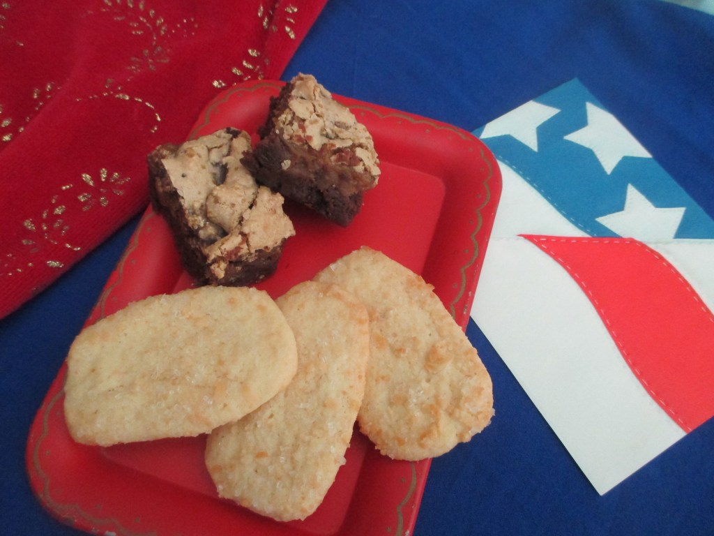 My mother’s birthday is on Tuesday the 6th and as usual I baked, packed and mailed cookies for her to share and hide. This year there were four types, but only three show in the photo. Three? Yes, because one of them is my new and approved Crookie with the brownie on the bottom and a chewy chocolate chunk on top instead of chocolate shards. The others were Peanut Butter Butter Cookie (not shown, all gone) and Toasted Coconut Butter Cookies. She’ll hide the latter in a dresser drawer as soon as she’s had one of them.