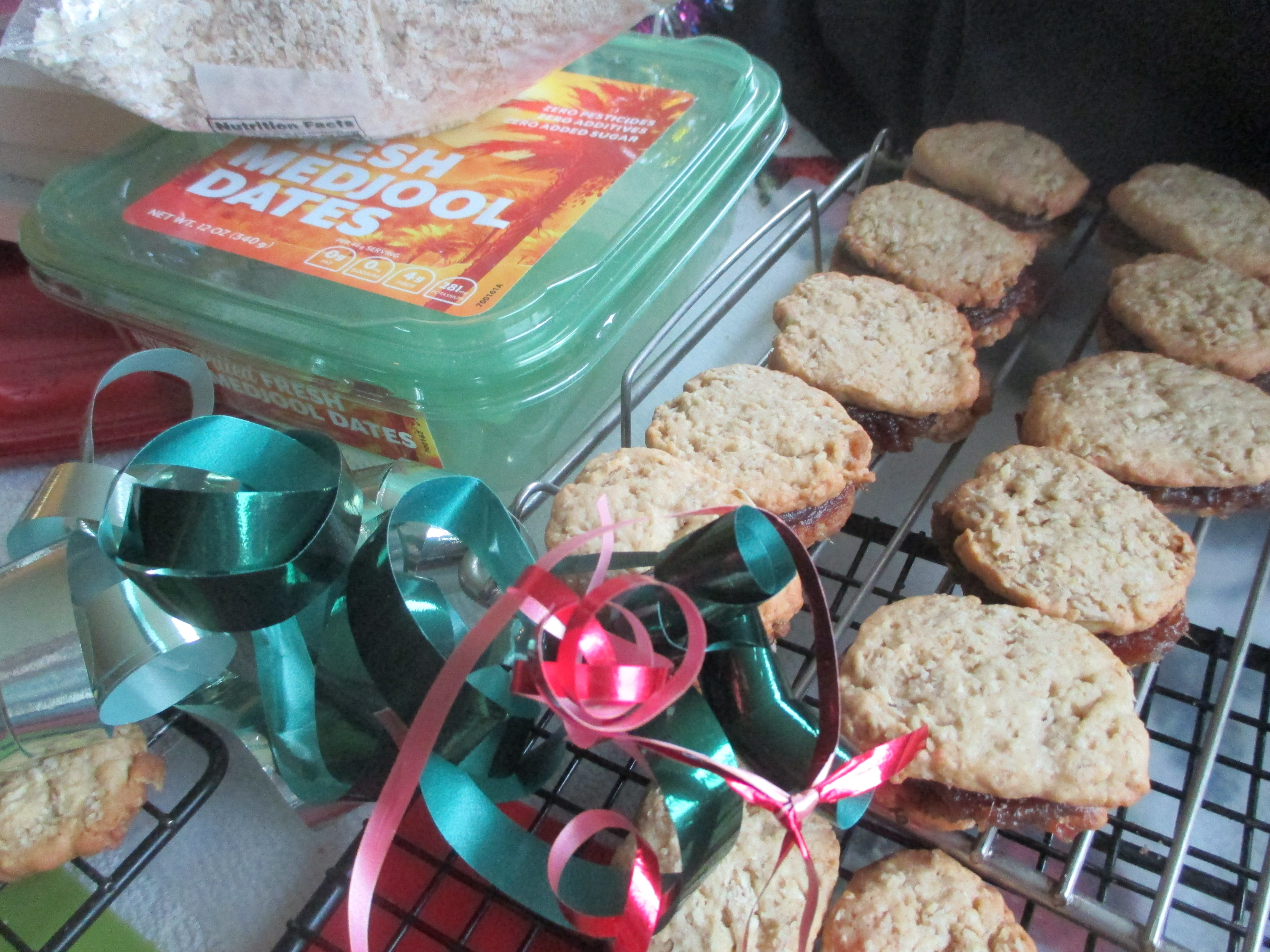 This cookie came about because I dreamed it the night before I made it, something which has happened many times. My family loves date-filled cookies, I had some Medjool dates leftover from Christmas baking (which didn’t get used because I tired early) and I knew my brother would enjoy them no matter how they turned out as long as there was plenty of filling. The oatmeal butter cookie itself is just my variation on an oatmeal icebox cookie and the filling is based on my granmother’s recipe for her rolled-and-cut date-filled cookies.