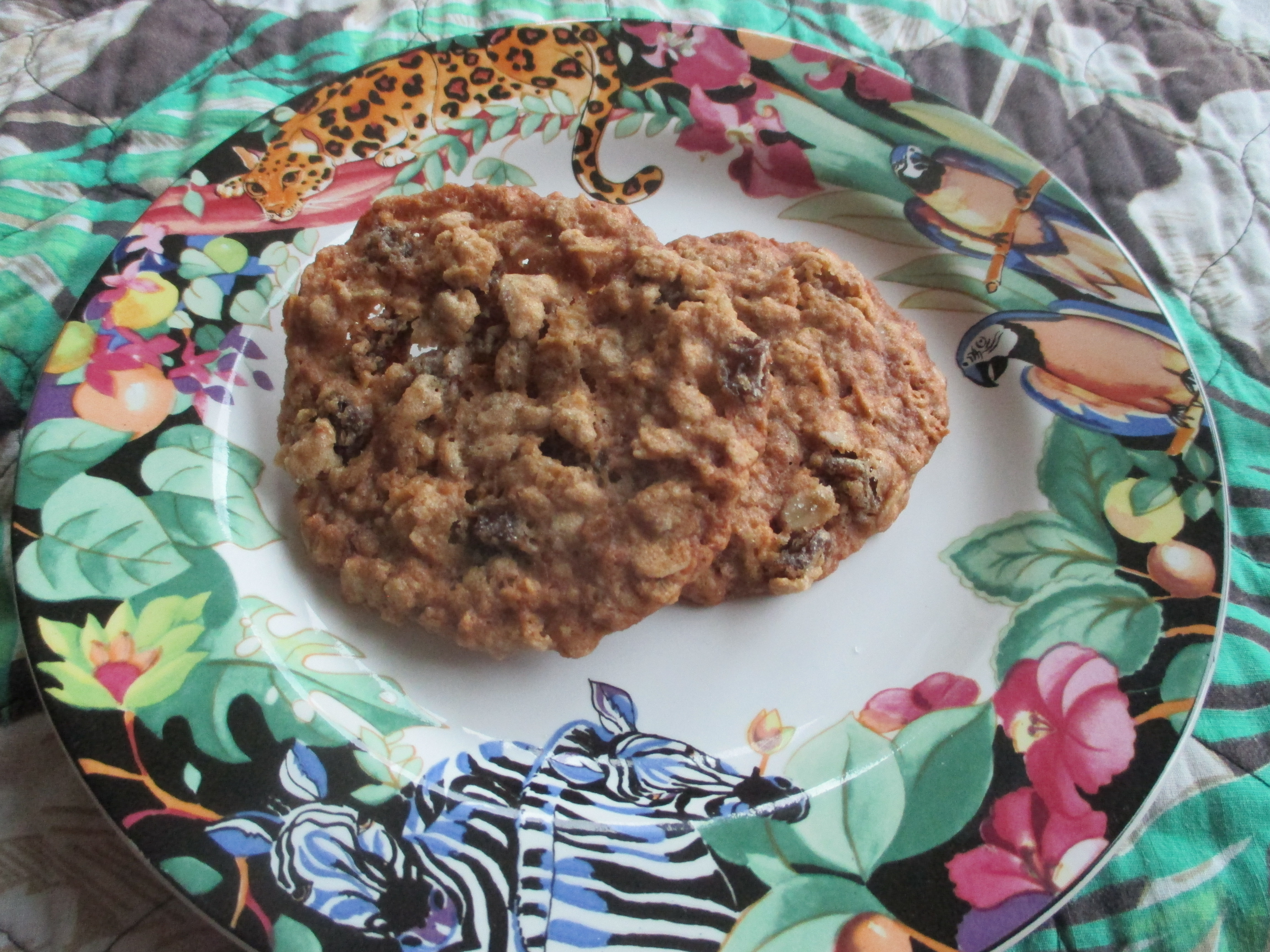 Last week the experiment resulted in a chewy, almost Florentine-like, browned butter oatmeal cookie with rummed-up golden raisins. It was one of two cookies made for Valentine’s Day gifts, the other being a lemon-and-raspberry chew. My mother approved of both.