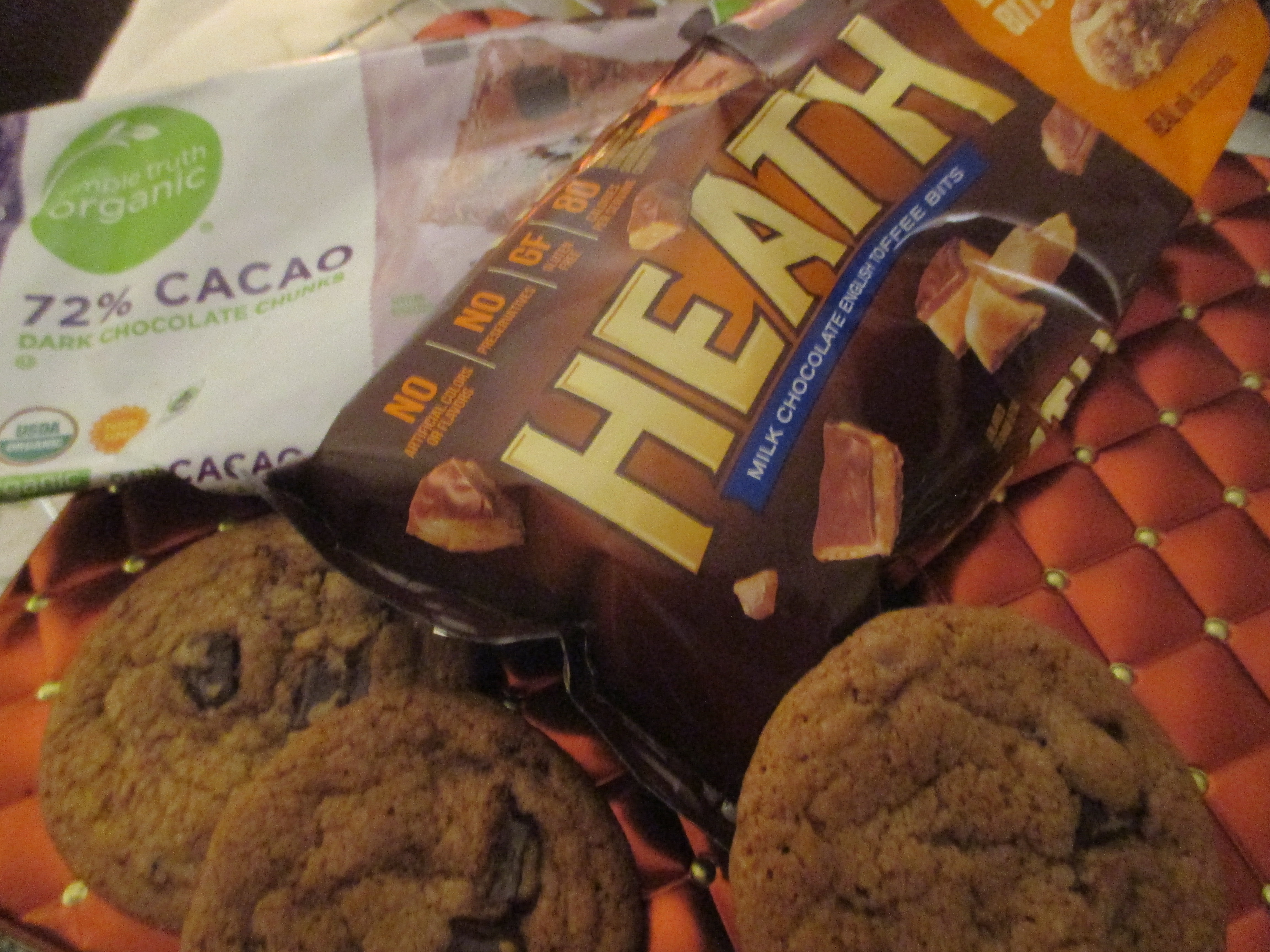 Today I’ve made a browned butter Heath Bar and dark chocolate chunk cookie for my drivers and physical therapists as gratitude cookies tomorrow. I’m intending to make a trio of these browned butter goodies, but I’ll keep the third cookie a secret until it turns from the idea into the real thing.
