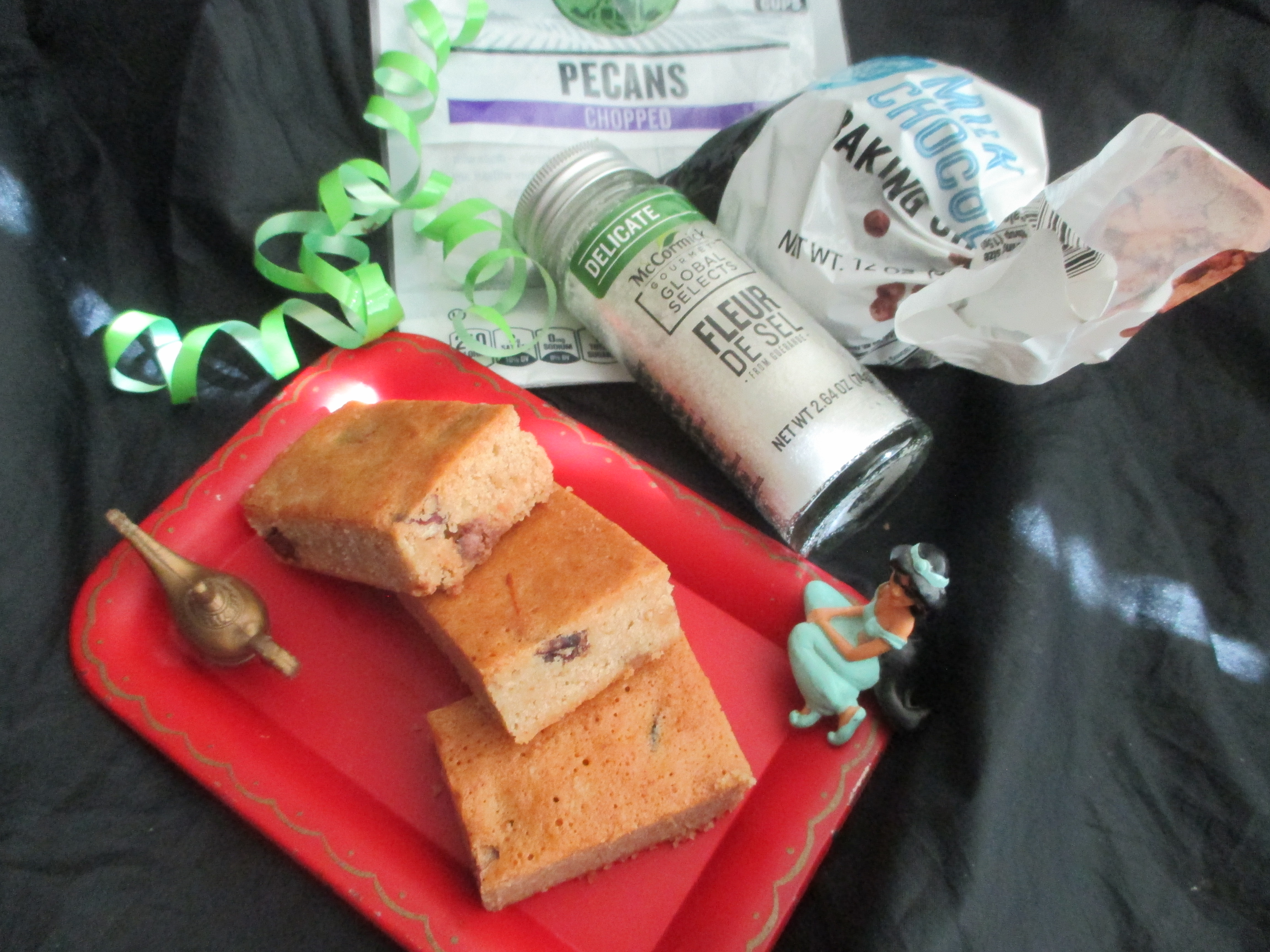 While these blondies are tasty, I will alter the recipe next time that I make them as there are two things which don’t comport with my recipes for blondies, which are essentially brownies without being chocolate. First, the recipe included leavening and I followed the recipe. Brownies should not have leavening. Second, the recipe has too much flour in it to my taste. Next time: no leavening and less flour. I will keep the teeny, tiny sprinkle of Fleur de Sel atop.