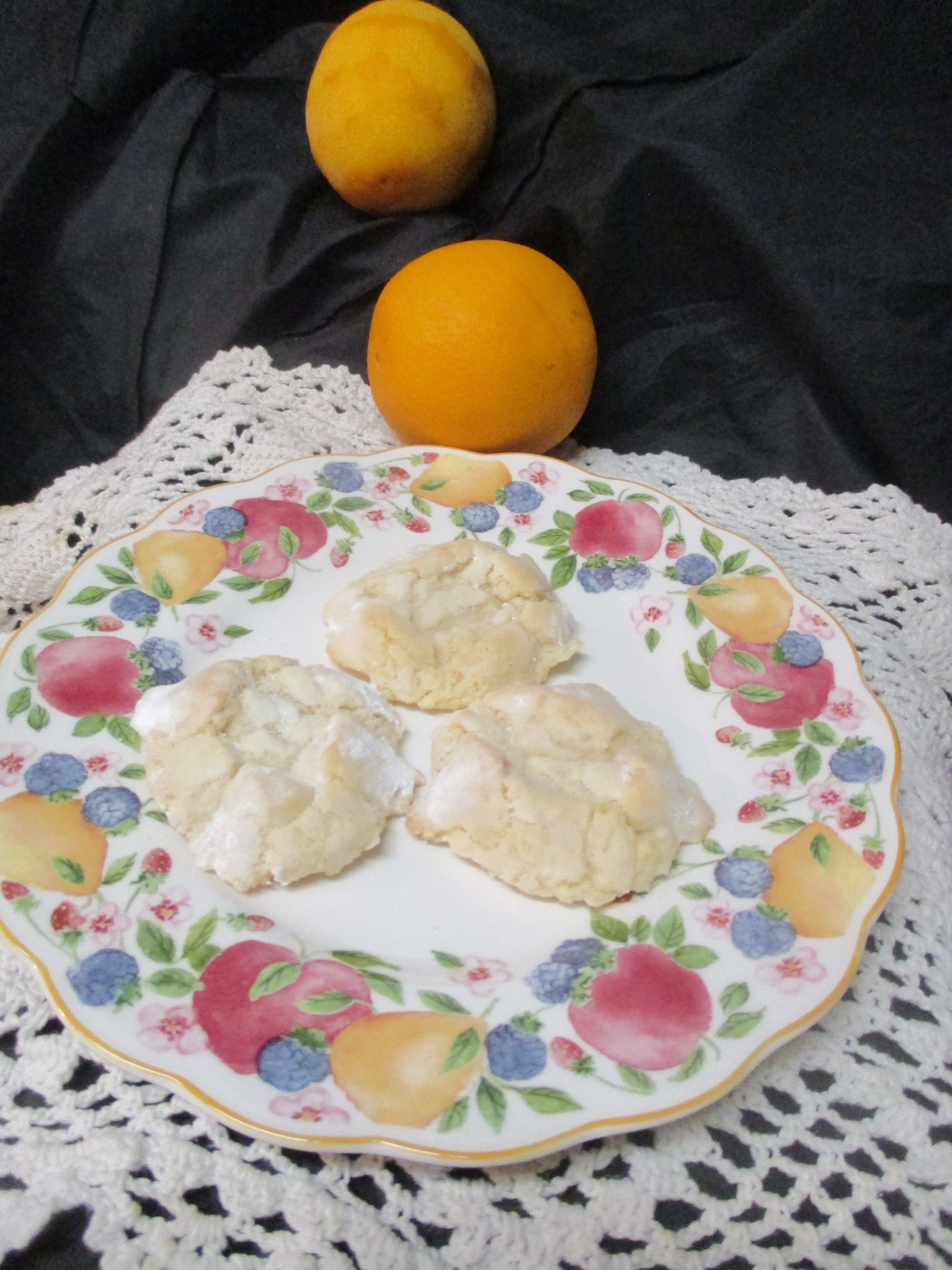 One of my Chinese lady friends from Sunday afternoon mahjongg offered up oranges last week as we were exchanging small food gifts per custom. I’d made a batch of my Definitely Lemon Gooey Chews* to share and announced that I’d make a gooey chew using oranges for our next afternoon. One lady asked if the cookies would be bitter from the orange zest and I assured her they would not. They are also definitely creamy, ergo the new name. Orange cream, oh yes! I think I’m going to need to rename the whole line of these cookies as they are all creamy along with chewy, gooey and flavorful. Picture walking into my little cookie shops and asking for a Definitely Orange Cream Gooey Chew, please.
