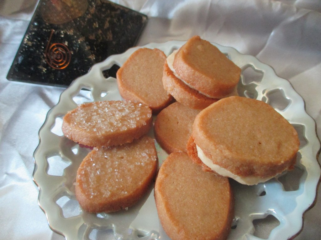 The impetus was a browned-butter caramel butter cookie and some penuche caramel frosting in the freezer needing thaw and use. The result? Less sugar for those who prefer less sugar but full flavor. Sugar for the classic expectation of a butter cookie. Mind-blowing Wich is out of this world after a day of mellowing to let the creamy frosting soften the cookie sandwich. Perfect blend of sugar and salt. For the penuche lovers in my family, this will fullfil a dream.