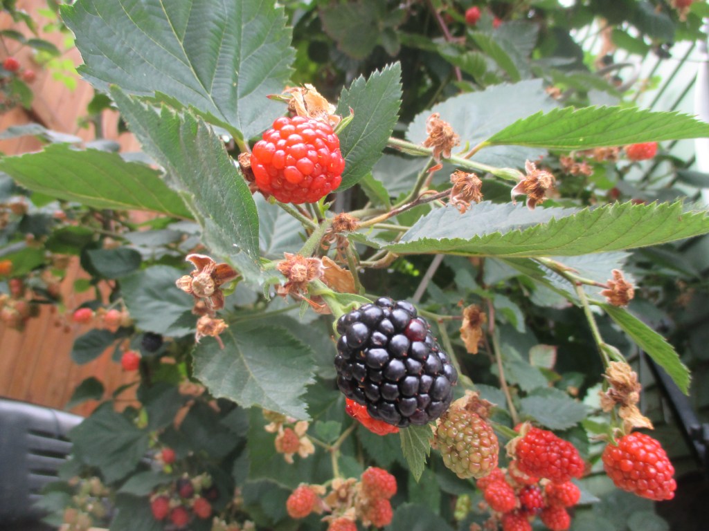 I was given a big handful of organic (i.e., grown in the family garden with no killer fertilizer) marionberries a few days ago while I was house and dogsitting. While I love the flavor of these berries, I do not love their big seeds so I saved them for a little baking project. Today I put them in a small pan with a bit of fresh lemon juice and sugar, brought them to a boil, then smashed the berries and strained all the delicious juice from them. The resulting marionberry sauce was divine, with a couple tablespoonsful on a defrosted mini raspberry scone* and the rest into the new cookie batter.