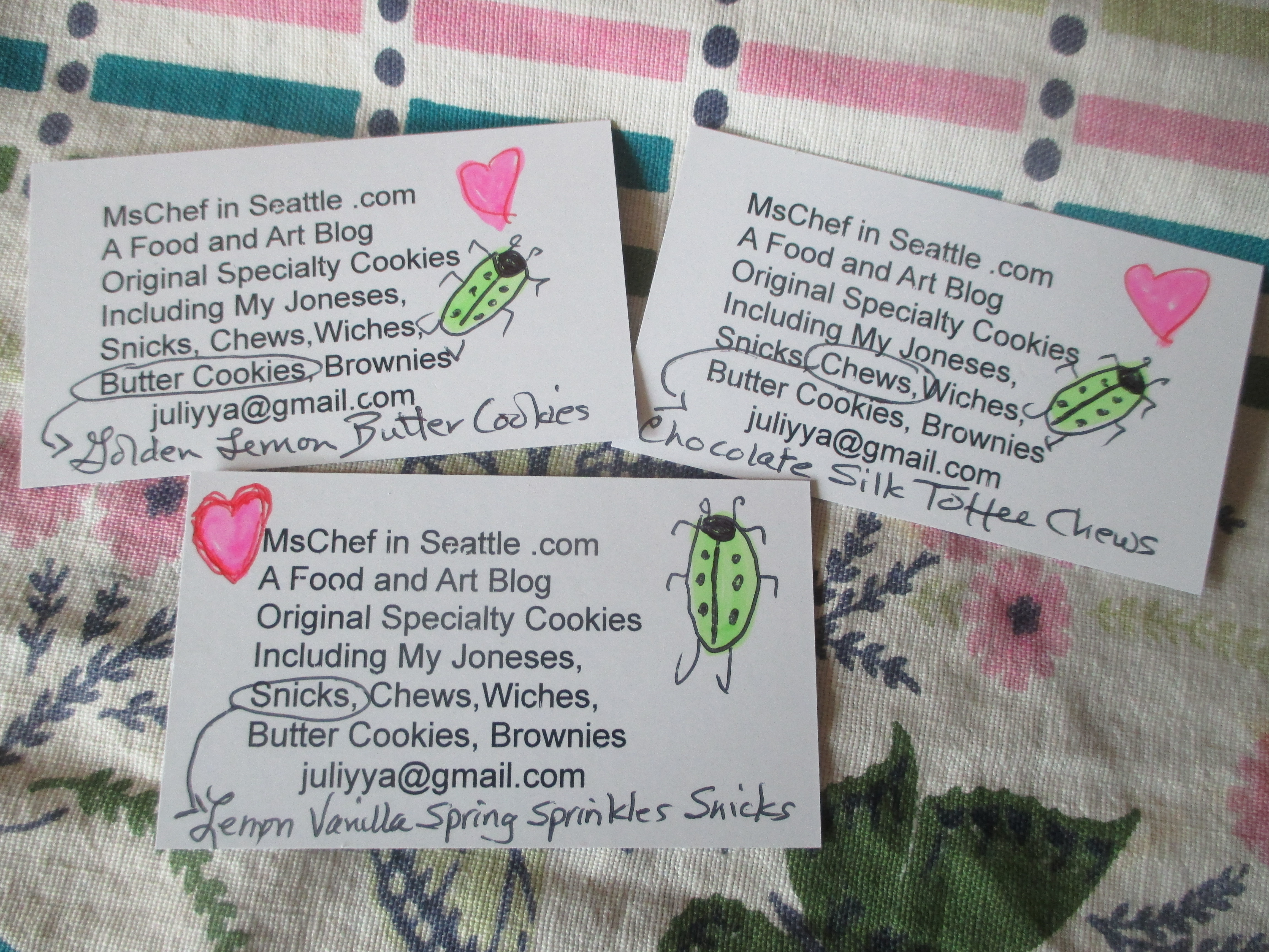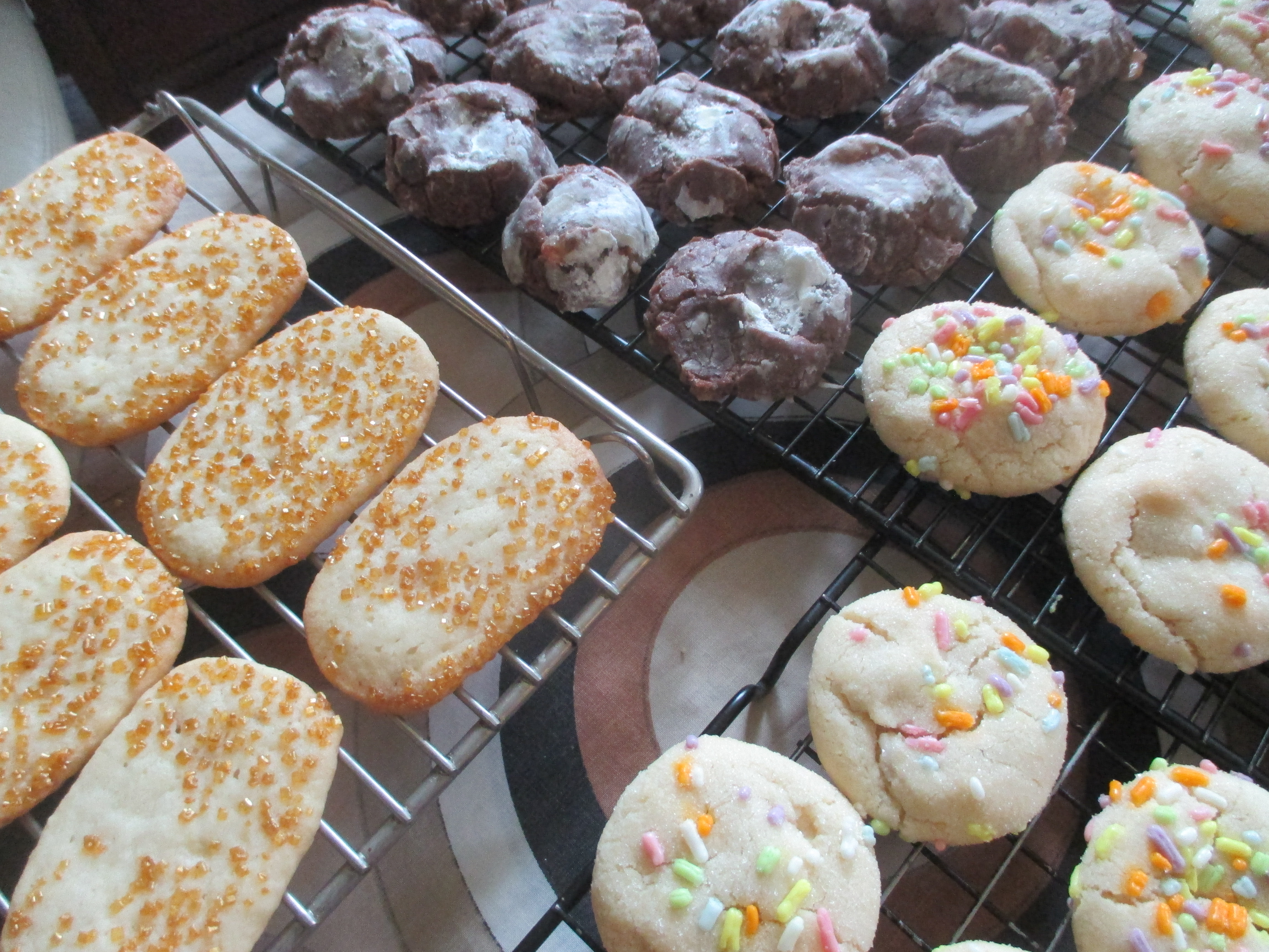 As I said in the previous post, I’m sending birthday surprises to my sweet, sweet sister-in-law who never reads this blog so she won’t see this and the surprise will not be spoiled. These three surprises are all my originals and include Golden Lemon Butter Cookies, the new Lemon Vanilla Spring Sprinkles Snicks and the almost-new Chocolate Silk Toffee Chews. I’m also making some Peanut Butter Graham Sandwich cookies in a little while to add to the mix. Remember those from childhood, all you oldies? Peanut butter frosting sandwiched in between a couple graham crackers, left to “mellow” for a day or so. My stepbrother is fond of peanut butter and dark chocolate, so I send a couple types he favors.