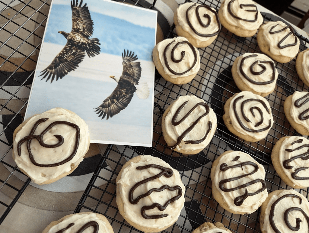 As I wrote in an Instagram post: It’s said that the eagle flies solo, except for his mate. I’m happy to say that my Joneses have new offspring and will fly alone as Toasted Coconut Caramel Jones. They have toasted, grated coconut, Trader Joe’s Sea Salt Caramel Baking Chips, a brown sugar cream cheese and coconut essence frosting. As with all my Joneses, they’re Jones’d with chocolate accents.