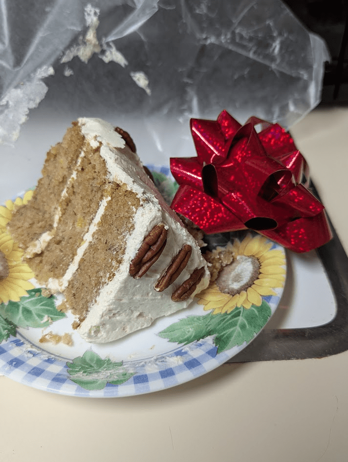 The cake was in honor of two important birthdays. My beautiful niece Miley turned 18 on Wednesday the 15th, a memorable birthday, right? (She wasn’t here, but I let her know that I was thinking about her.) The 15th also included a mahjongg afternoon with my three Chinese ladies, one celebrating her 70th birthday, another memorable event. I made the card to announce the flavors in the cake. Chun Ming took photos and sent them to her husband who is currently in Taiwan awaiting her arrival next week for a month’s holiday with family. I noted that the photo may remind him to do some shopping in the interim!