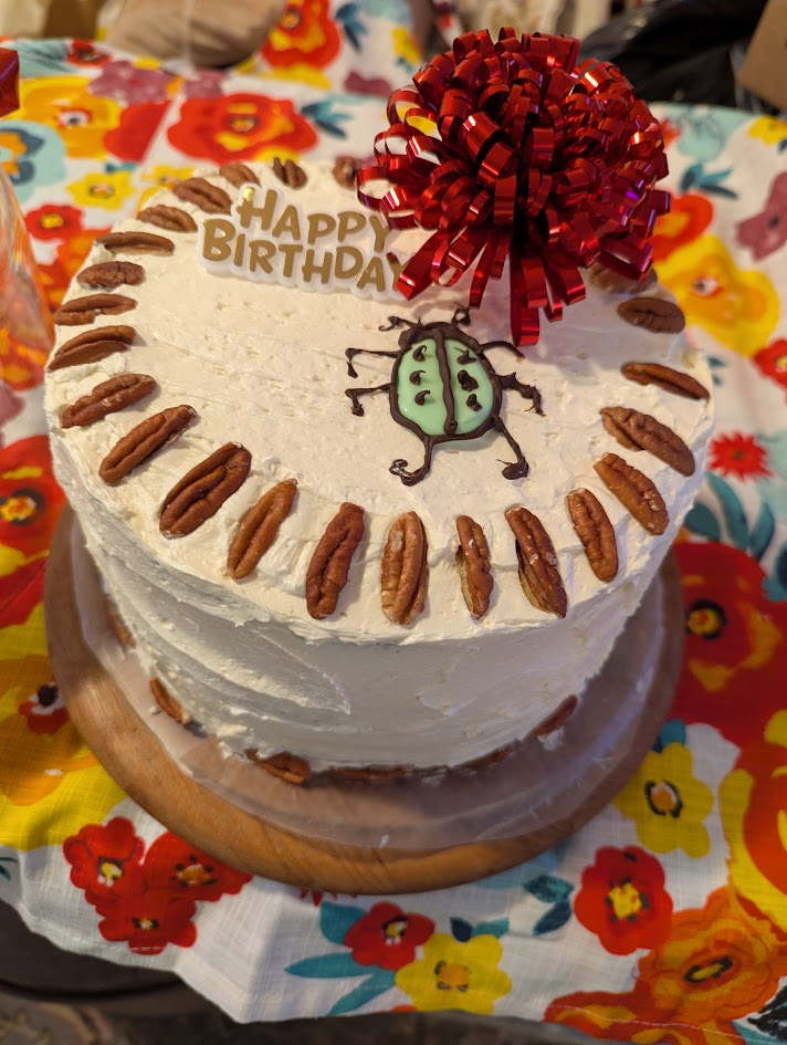 The cake was in honor of two important birthdays. My beautiful niece Miley turned 18 on Wednesday the 15th, a memorable birthday, right? (She wasn’t here, but I let her know that I was thinking about her.) The 15th also included a mahjongg afternoon with my three Chinese ladies, one celebrating her 70th birthday, another memorable event. I made the card to announce the flavors in the cake. Chun Ming took photos and sent them to her husband who is currently in Taiwan awaiting her arrival next week for a month’s holiday with family. I noted that the photo may remind him to do some shopping in the interim!
